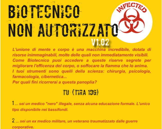Una classe medica per CY_BORG: il Biotecnico Non Autorizzato si occupa di psicologia, wetware, chirurgia, cibernetica, farmacologia...